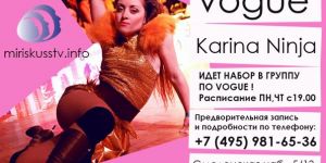 04.09.2014 Приглашаем всех в группу по Вогу (Vogue) к Карине Федотовой (Karina Ninja)!Подробнее »Принимаем заявки в группу по популярному и очень красивому направлению Vogue (Вог). Педагог - Карина Федотова (Karina Ninja).