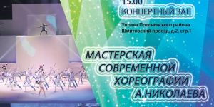 20.01.2018 28 января в 15.00 -Отчетный концертПодробнее »ДОРОГИЕ ДРУЗЬЯ! 28 января в 15-00 в Пресненской управе состоится отчетный концерт учеников студии современной хореографии А.Николаева. Вход бесплатный. Приходите! Ждем!