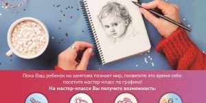 03.02.2019 Мастер-класс по графикеПодробнее »Пока ваш ребенок на занятиях познает мир, посвятите это время себе: посетите бесплатный мастер-класс по графике!