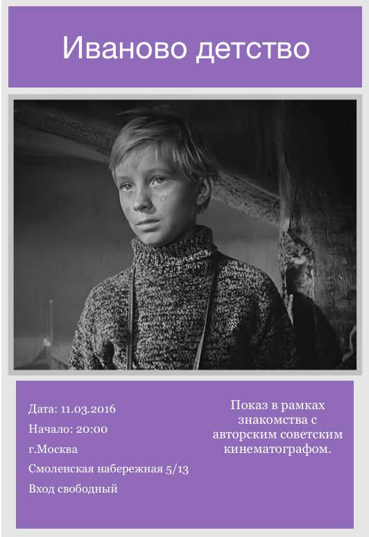 Ура! 11 марта в 20:00 часов по адресу Смоленская набережная 5/13 мы будем знакомиться с авторским советским кинематографом!