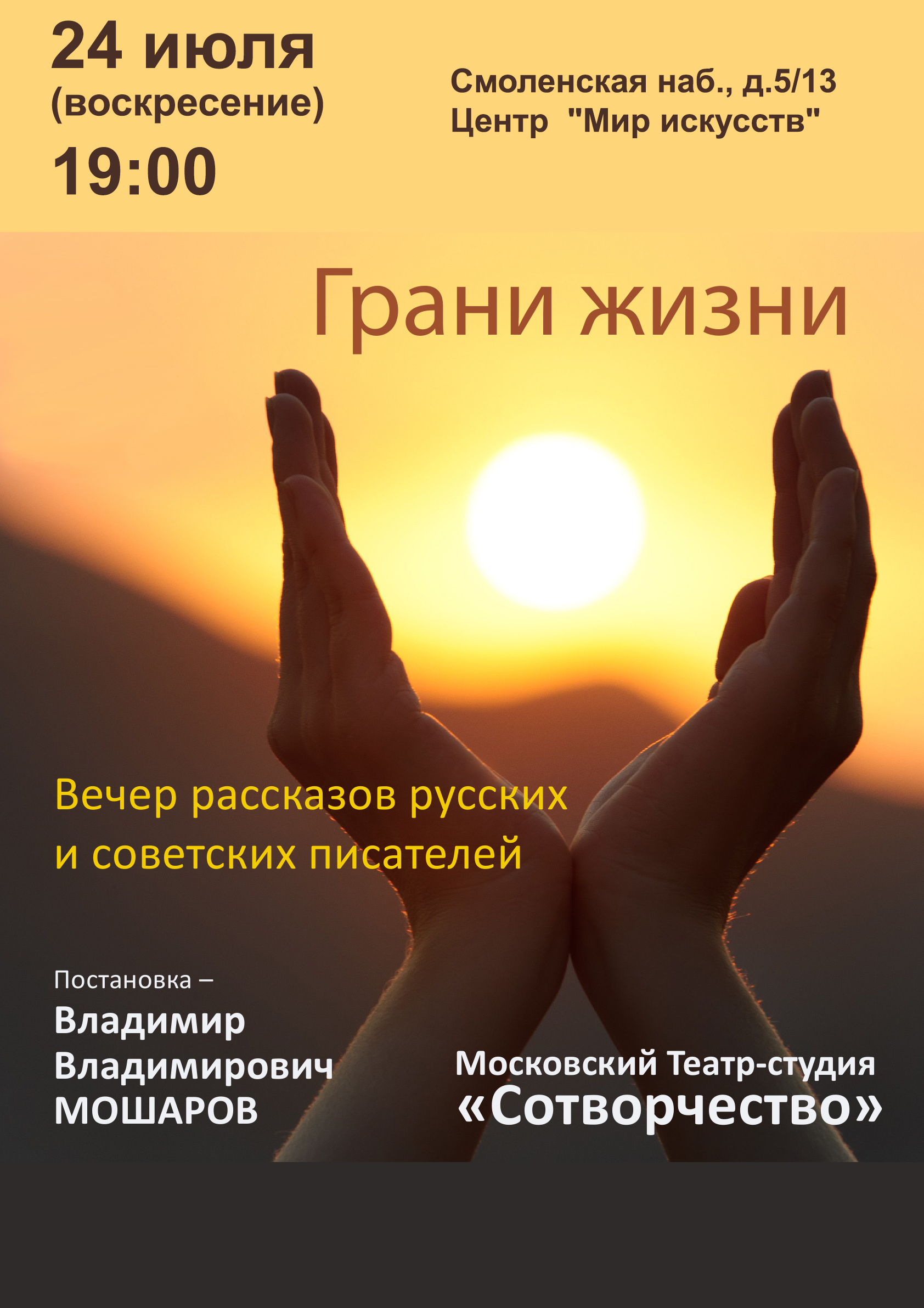 24 июля студия-театр "Сотворчество" проведёт вечер рассказов русских и советских писателей "Грани жизни".