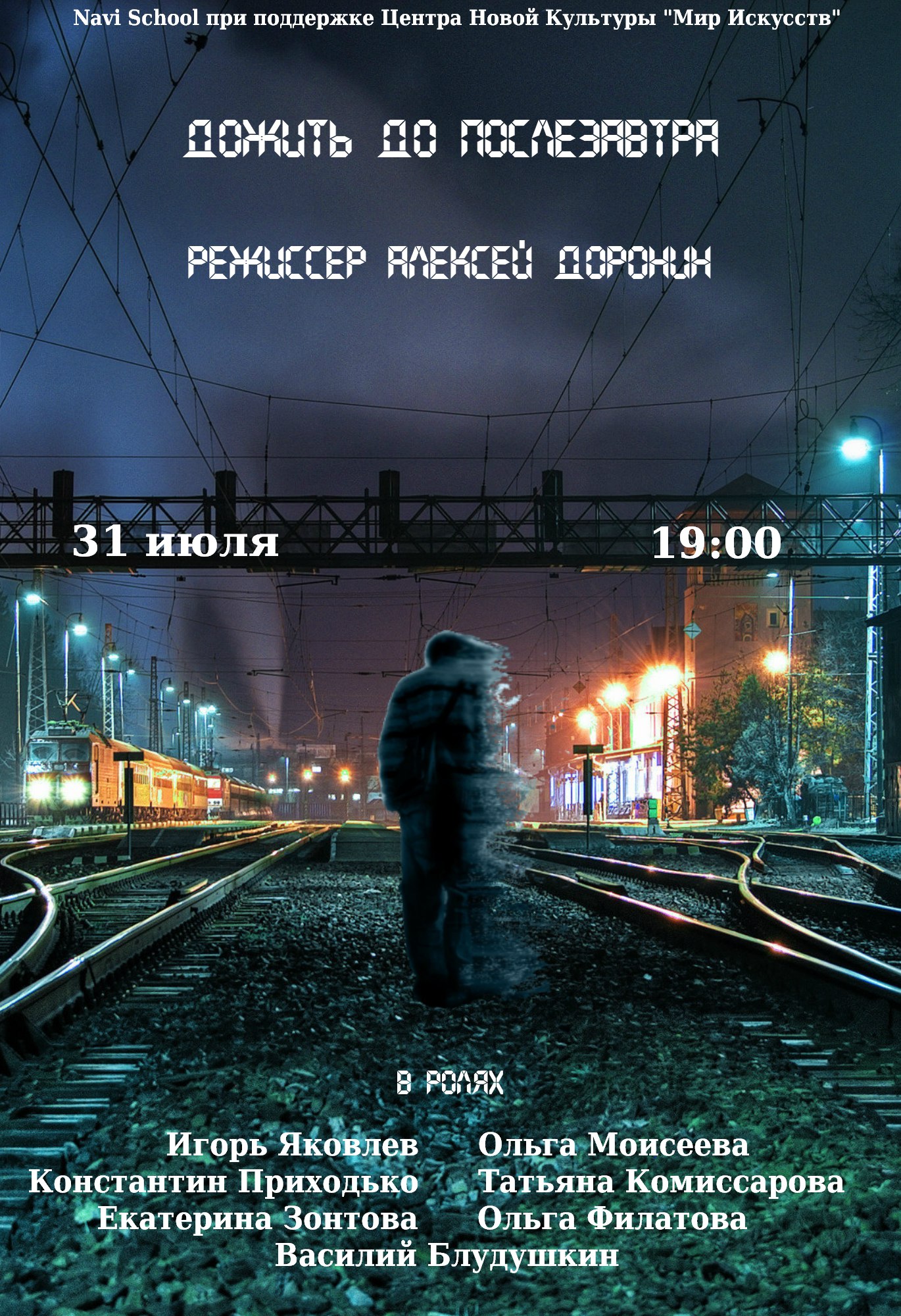 Друзья! Приглашаем Вас на Благотворительный спектакль «Дожить до послезавтра», от выпускников Navi School при поддержке Центра новой культуры "Мир Искусств".