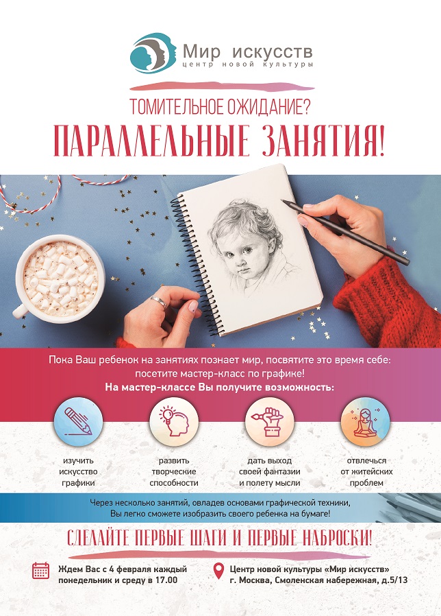 Пока ваш ребенок на занятиях познает мир, посвятите это время себе: посетите бесплатный мастер-класс по графике!